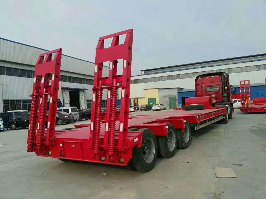 在往低平板半掛車上裝載機械設備時,通常是從半掛車后端裝載機械設備,即采用從后輪架上面移動機械設備或者將車輪移除的方式,然后再將機械設備固定在半掛車上。低平板式半掛車行走結構使用高強度國際鋼材質,整車自重輕,并保障其抗扭曲、抗震、抗顛簸能力、滿足不同的路面承載能力。